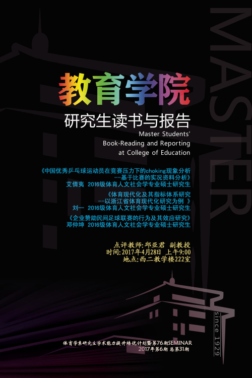 【研究生读书与报告】2017年第6期(体育学系研究生学术能力提升培优计划暨第76期SEMINAR)