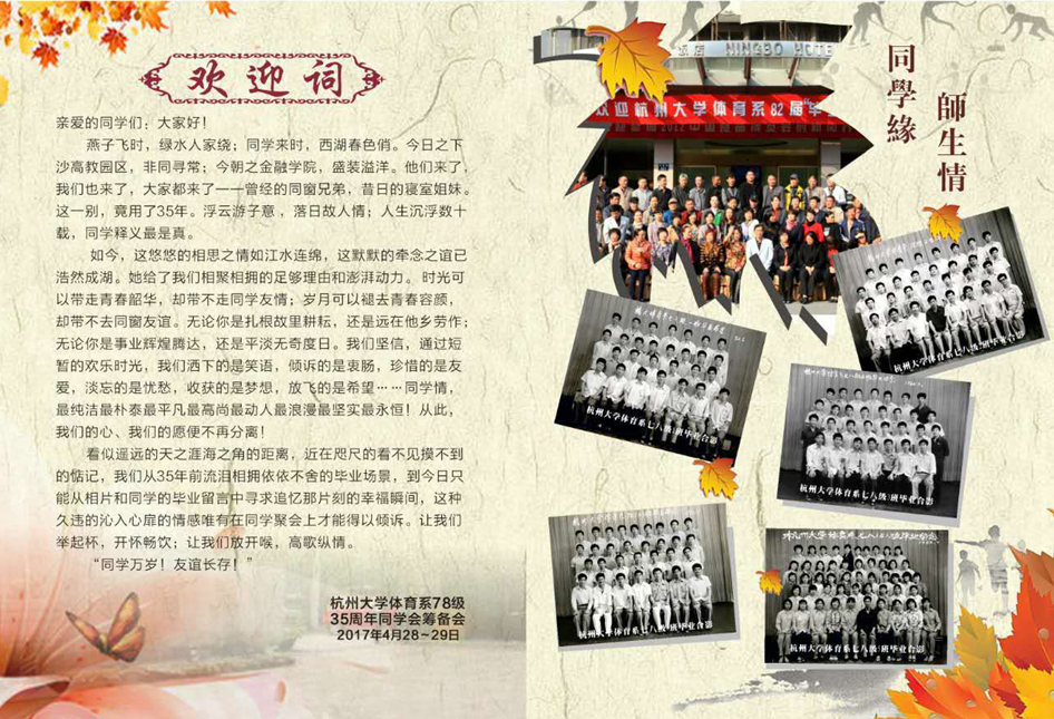 4月29日,浙江大学教育学院体育学系(原杭州大学体育系)78级毕业35周年同学会在杭州举行。与会同学近80人,会议特邀教育学院副院长于可红教授、体育学系主任王健教授及班主任和部分教师代表参加。