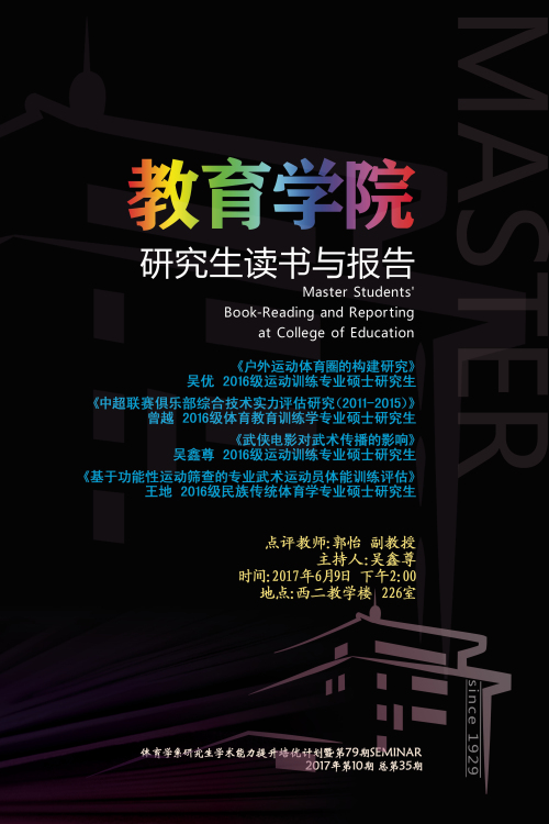 【研究生读书与报告】2017年第10期(体育学系研究生学术能力提升培优计划暨第79期SEMINAR)