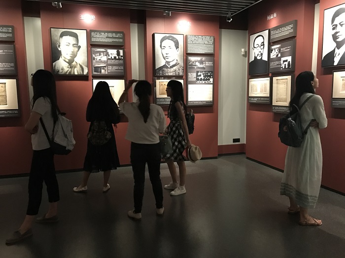 如今,100多平方米的展厅内,13位代表的展位以籍贯为单位陈列:上海的李达、李汉俊,长沙的毛泽东、何叔衡,济南的王尽美、邓恩铭,北京的张国焘、刘仁静,广州的陈公博,留日学生周佛海以及陈独秀委派的包惠僧。柔和的灯光下,这些陈旧的历史照片和文物史料,似乎又把大家带回了那段峥嵘岁月。我们的党从无至有,经历艰难曲折无数,时至今日,师生们也更进一步地懂得了什么是“艰难困苦,玉汝于成”的高深境界。