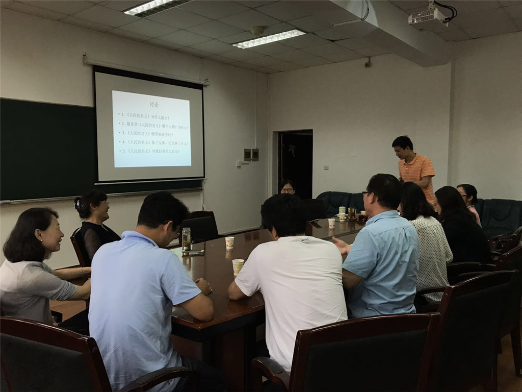 会议首先由支部宣传委员温煦老师做主题发言。温老师围绕前段时间热播电视剧《人民的名义》,在简短回顾、介绍剧作故事梗概及其引发的社会舆论等后,展开了关于反腐问题的讨论。与会党员教师也从个人的观后感受出发,围绕“这部剧为什么火”、以及“这部剧对我们有什么启示”等问题,开展了热烈讨论。老师们肯定了用群众易于接受的影视作品等形式对贪腐问题进行呈现及抨击的方式,也感受到了国家现阶段对于打击反腐、正风肃纪的决心,并表达了对制度创新、机制建立等反腐成效的期待和对国家改革发展的信心。