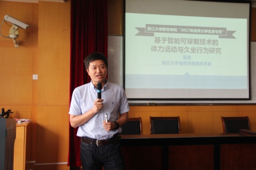 | 孙元涛副教授作“专业化、反专业化、再专业化——教师 教育的政策、实践与理念”的学术报告 | 温煦副教授作“基于智能可穿戴技术的体力活动与久坐行为研究”的学术报告 |