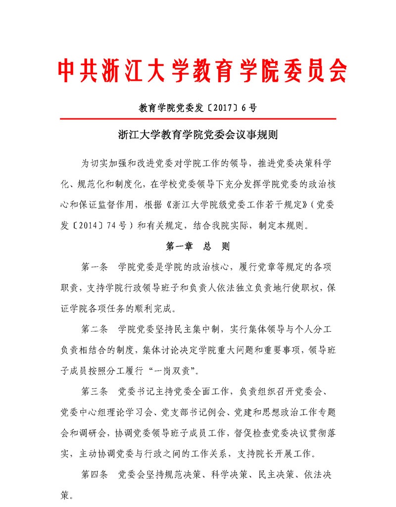 教育学院党委发〔2017〕6号:浙江大学教育学院党委会议事规则