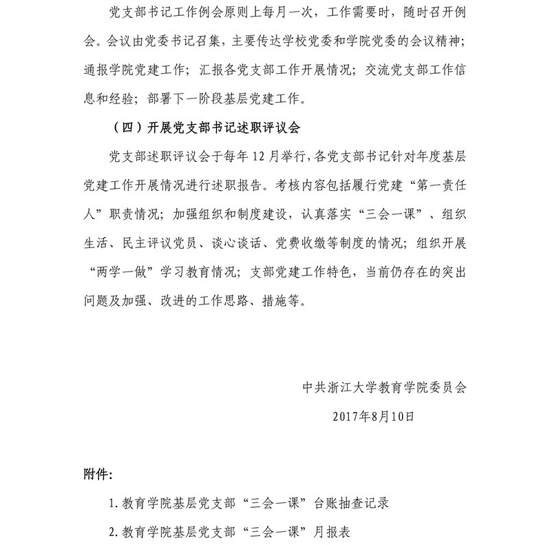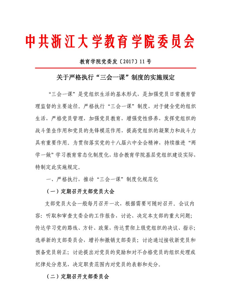 教育学院党委发〔2017〕11号:关于严格执行“三会一课”制度的实施规定