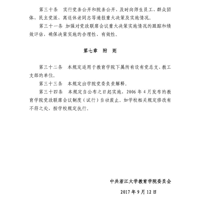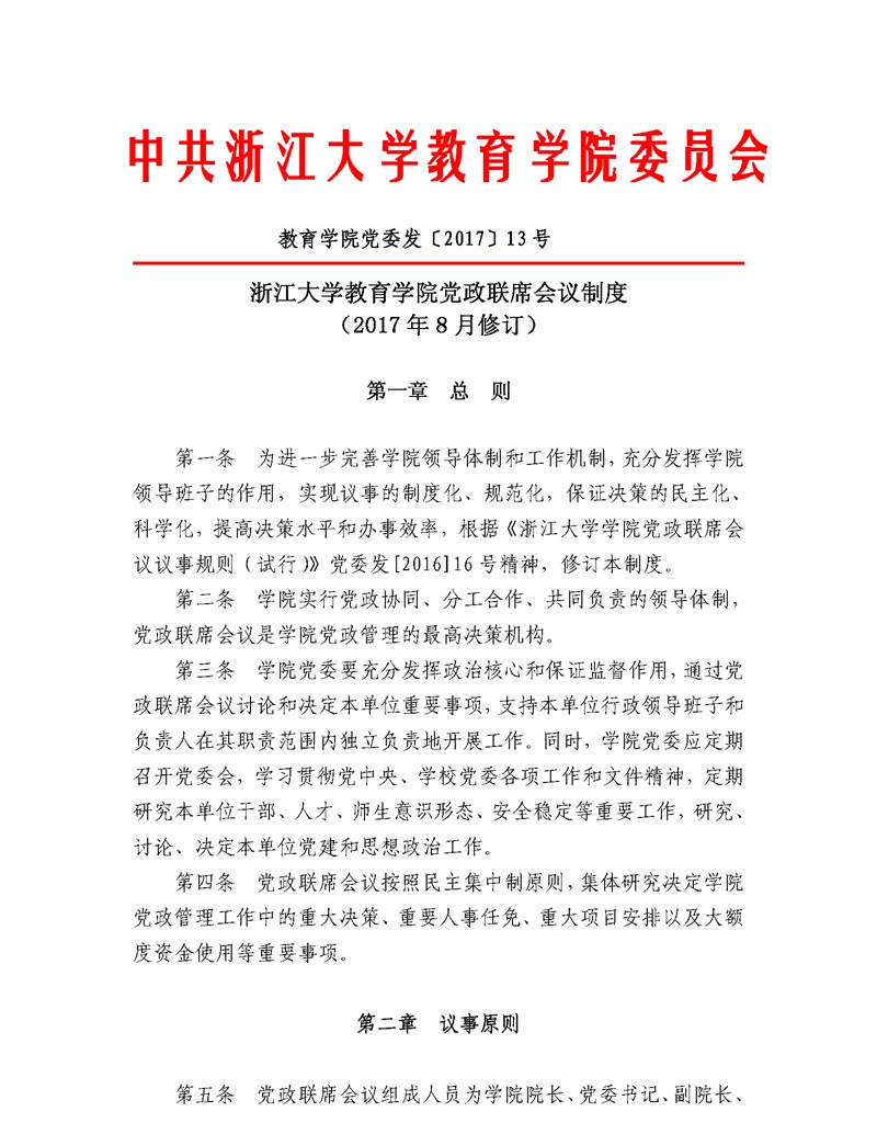 教育学院党委发〔2017〕13号:浙江大学教育学院党政联席会议制度