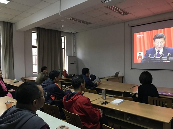 体育学系教工理论支部和体育学系教工术科支部组织党员同志在西二教学楼224观看了十九大直播。大家认真聆听了习近平总书记《决胜全面建成小康社会 夺取新时代中国特色社会主义伟大胜利》的报告。习总书记指出,中国共产党人的初心和使命,就是为中国人民谋幸福,为中华民族谋复兴。中国特色社会主义进入新时代,意味着近代以来久经磨难的中华民族迎来了从站起来、富起来到强起来的伟大飞跃,迎来了实现中华民族伟大复兴的光明前景;意味着科学社会主义在二十一世纪的中国焕发出强大生机活力,在世界上高高举起了中国特色社会主义伟大旗帜;意味着中国特色社会主义道路、理论、制度、文化不断发展,拓展了发展中国家走向现代化的途径,给世界上那些既希望加快发展又希望保持自身独立性的国家和民族提供了全新选择,为解决人类问题贡献了中国智慧和中国方案。中国特色社会主义进入新时代,我国社会主要矛盾已经转化为人民日益增长的美好生活需要和不平衡不充分的发展之间的矛盾。体育系党员同志认真聆听了习总书记的报告,并展开热烈讨论,深入学习贯彻习总书记传达的精神。体育学系党员同志纷纷表示会认真领会十九大精神,不忘初心,牢记使命,为实现中华民族伟大复兴的中国梦不断奋斗!
