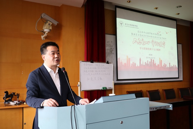 最后,吴巨慧号召全院上下要坚决维护以习近平同志为核心的党中央权威和集中统一领导,深学笃用习近平新时代中国特色社会主义思想,拥抱新时代、践行新思想、实现新作为,为建设综合实力强、特色鲜明、世界先进水平的教育学院而努力奋斗!以优异成绩迎接学校第十四次党代会的胜利召开!