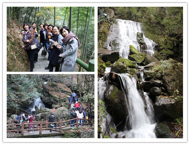 第二站大家来到“浙北第一瀑布谷”——藏龙百瀑,这里拥有大小瀑布100多处,其中两条最大的瀑布落差达60米。游步道紧靠溪谷蜿蜒,伴随着流泉飞瀑声,大家一路昂扬前行。累了,停下步,坐在瀑布上的栈桥楼阁休息,呼吸茂密森林吐纳的天然氧,置身此处感觉别有洞天。