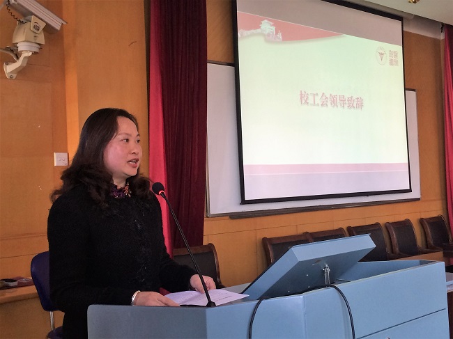 第四届工会主席孙元涛作工会工作报告,报告介绍了工会在凝心聚力、培育文化认同、参与院校管理、服务工会会员等方面开展的工作。在肯定工作成绩的同时,也指出工作中的缺憾及下一步的工作重点,并表示学院工会将以更加饱满的工作热情,更加扎实的工作作风,团结和动员全院教职员工为学校、学院各项事业再上新台阶作出更多贡献。