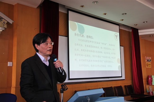 院长顾建民作学院工作报告。报告回顾了2017年学院在教学、科研、国际化、社会服务及党的建设等方面取得的成绩,指出了存在的瓶颈,结合“双一流”建设方案,提出了相应的目标与具体举措。顾院长指出,希望大家以主人翁精神对学院“双一流”建设初步方案进行充分讨论,并提出意见和建议,争取最大公约数,力求达成共识,共同以实际举措推进各项工作,助力学院发展。