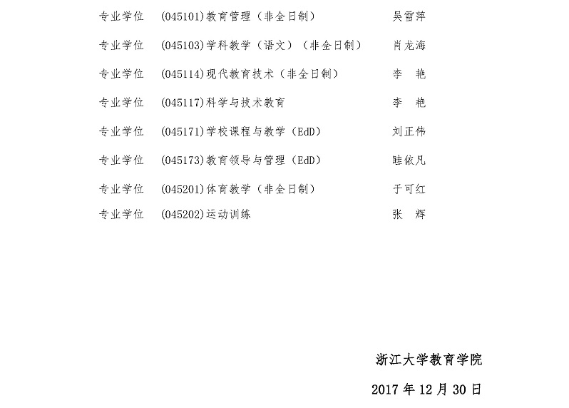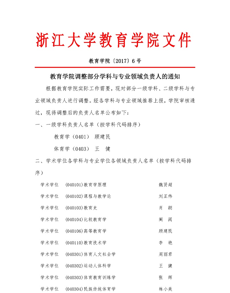 教育学院〔2017〕6号:教育学院调整部分学科与专业领域负责人的通知