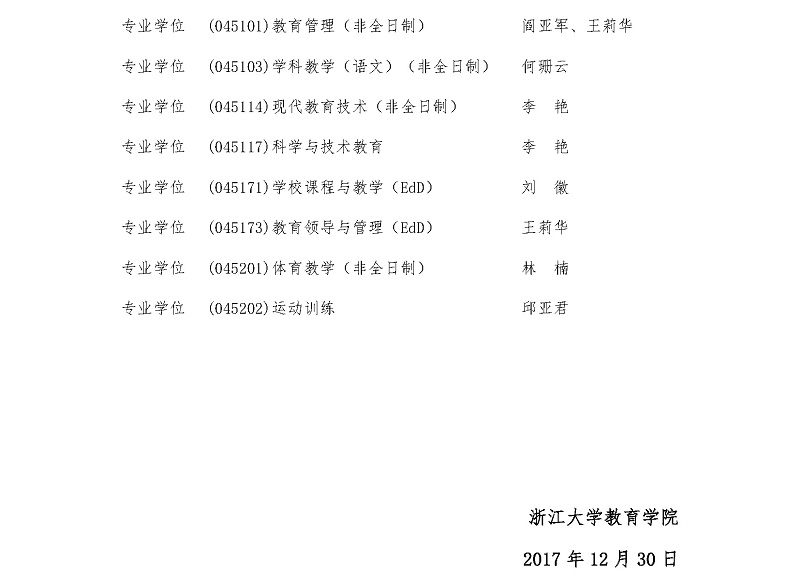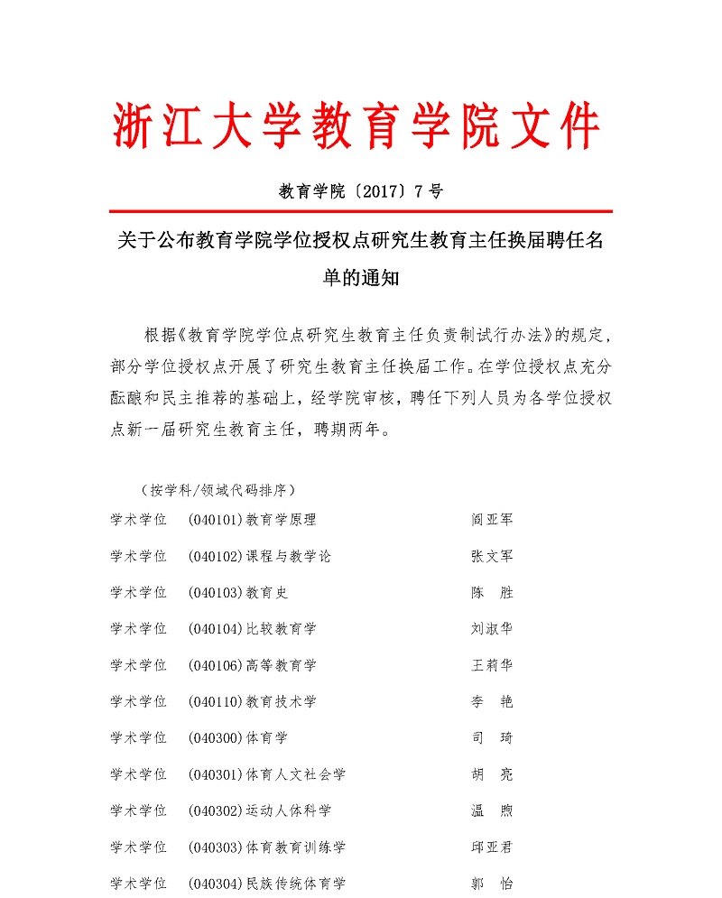 教育学院〔2017〕7号:关于公布教育学院学位授权点研究生教育主任换届聘任名单的...