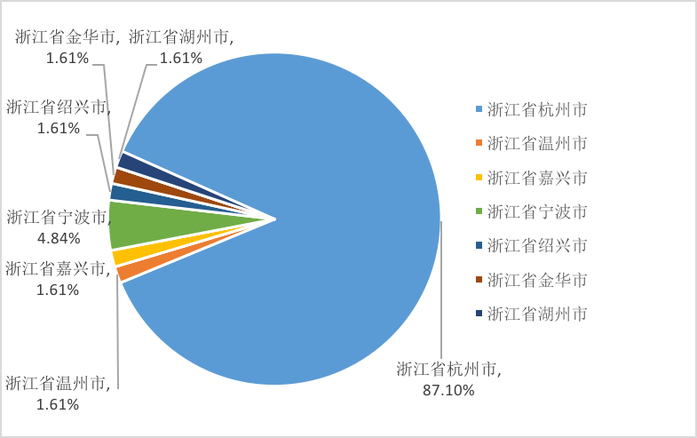 2017年省内就业的毕业生除去定向、升学、出国的学生后共62人,主要流向7个地区,其中主要流向杭州市,其次主要流向宁波等市。