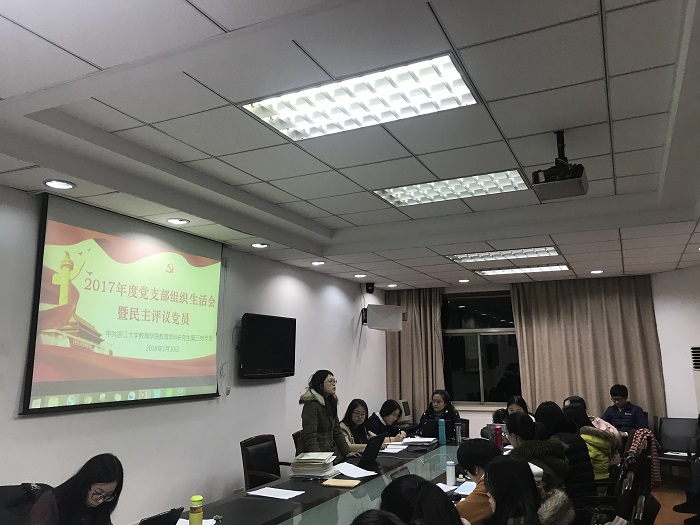 为深入学习贯彻党的十九大精神,推进“两学一做”学习教育常态化制度化,牢固树立“四个意识”,坚定“四个自信”,提升基层党组织组织力,2018年1月10日晚,教育学院教育学科研究生第三支部在田家炳书院228会议室召开全体党员大会,开展民主评议党员工作。