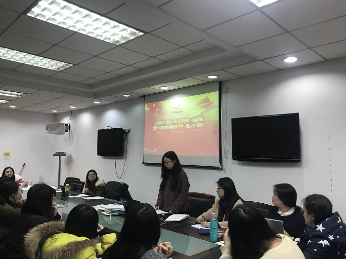 在本次全体党员大会上,支部成员开展了党课学习。杨佳欣、耿婷分别为大家带来了“忠诚担当、聚焦一流、改革创新、内涵发展——学习浙江大学2017年暑期会议精神”、“学习习近平总书记7·26重要讲话精神”的主题党课,支部成员对学习内容进行了讨论和交流,现场氛围十分活跃。