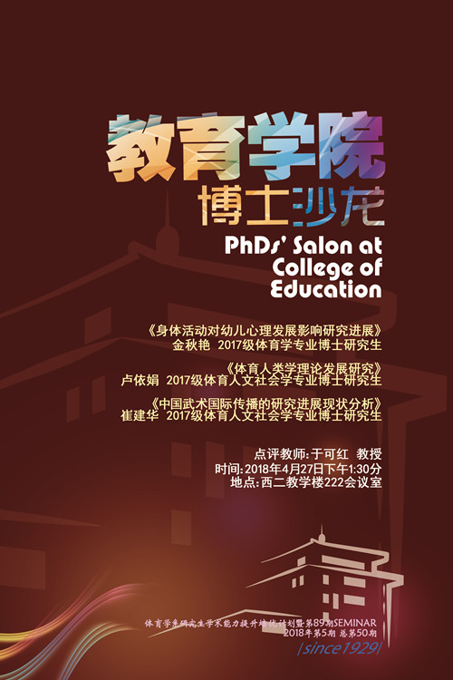 【博士沙龙】2018年第5期(体育学系研究生学术能力提升培优计划暨第89期SEMINAR)