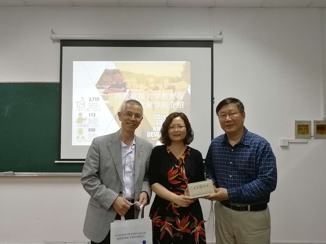 5月22日下午,教育学院体育学系86届校友、美国西密歇根大学教育与人类发展学院院长李明和86届校友、杭州体育师范大学教授凌平重返西溪校区,回访母校。周丽君副院长、体育系系主任王健、体育系党总支书记沈国平、副书记司琦及20余位师生参与座谈。