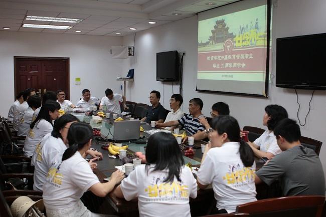 斗转星移,沧海桑田。昔日的杭大校园早已成为浙大西溪校区,杭大教育系也已并入为浙大教育学院,并从东二教学楼搬到田家炳书院,听说不久后又要搬到紫金港校区。在陌生的会议室里他们遇到熟悉的人,班主任姚信老师,时任副系主任戚谢美老师,任课老师吴雪萍、赵卫平,以及同学们,这一切让大家仿佛又回到了大学时光。