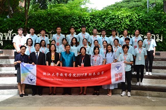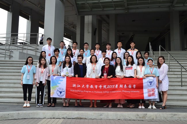 8月7日下午,教育学院访泰师生一行来到了泰国国立法政大学。泰国国立法政大学始创于1933年,是泰国最古老的大学之一,被誉为“总理”的摇篮,其教学宗旨是为泰国全社会提供接受高等教育的机会。法政大学公共健康系的Mare Van Der Putten等三位教授对来访师生表示热烈欢迎,并介绍法政大学在教学、科研、学生生活方面的基本情况。随后,陈炯晟同学代表访问团向泰方介绍了浙江大学和教育学院的相关情况。