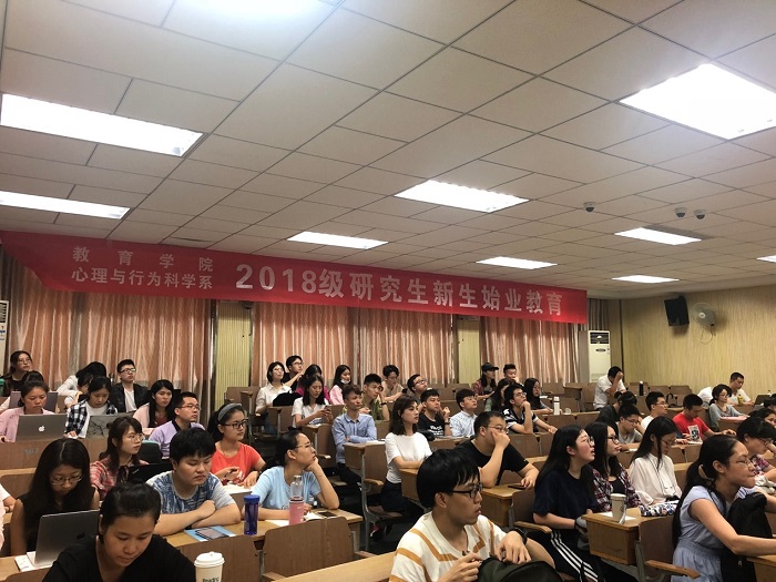 2018年9月21日下午,为了让大家尽快适应研究生的学习生活,教育学院与心理与行为科学系联合在田家炳书院展开了始业教育专题系列教育。始业教育由三个板块组成。分别为“图书信息资源利用专题”、“心理健康教育专题”、“马克思主义宗教观教育专题”三个部分。