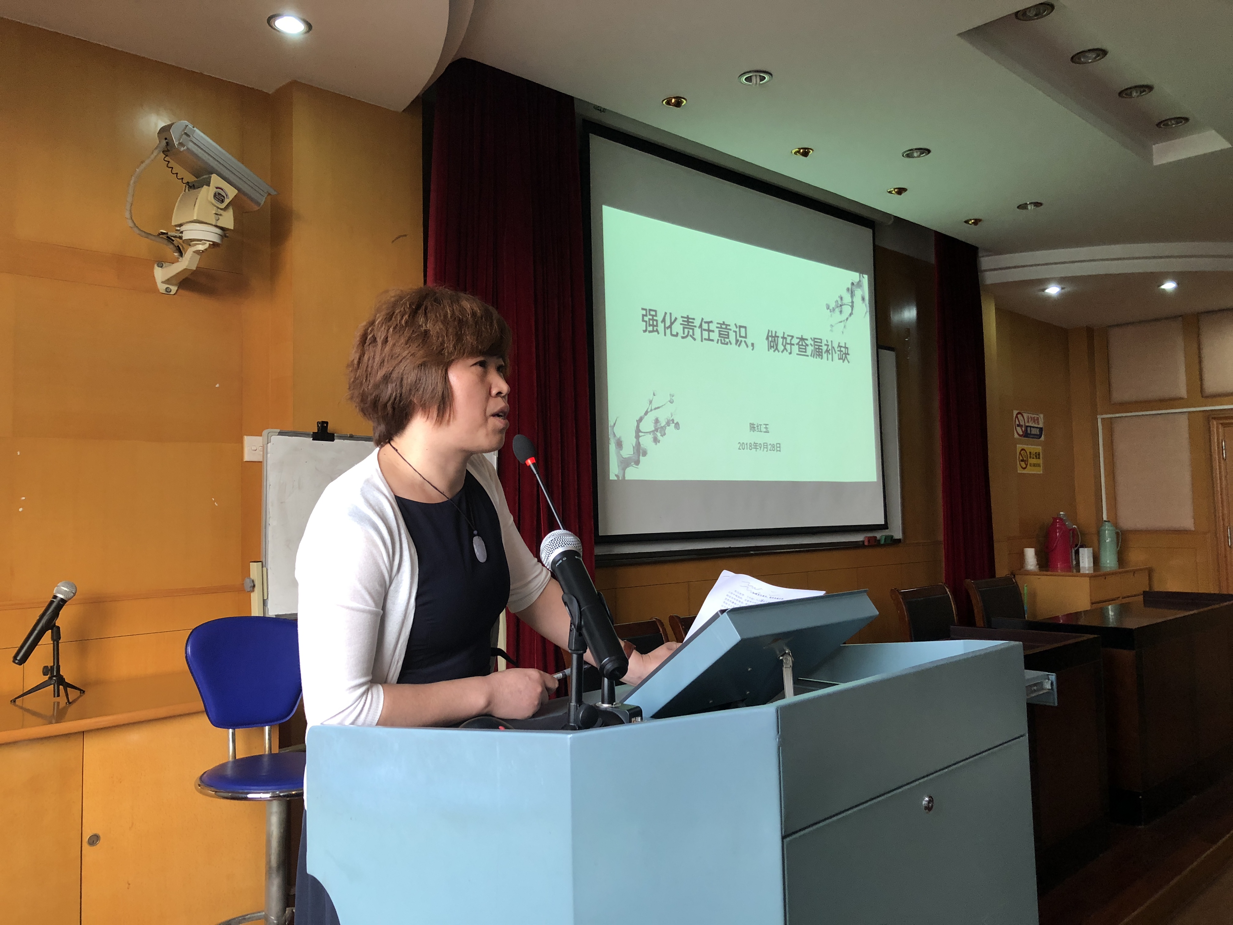 党政办主任陈红玉以“强化责任意识,做好查缺补漏”为主题,作财务廉政风险点实务分析。在重申党风廉政建设责任主要内容、工作原则的基础上,她结合学院工作实际详细分析了现阶段财务风险防控领域存在的漏洞及风险点,并提出了强化责任意识、加强宣传教育、健全制度机制、加强监督检查的工作努力方向。着重强调了加强党的政治建设,严明政治纪律和政治规矩,加强党风和廉政教育,增强干部廉洁自律和师生员工遵纪守法意识的重要性。