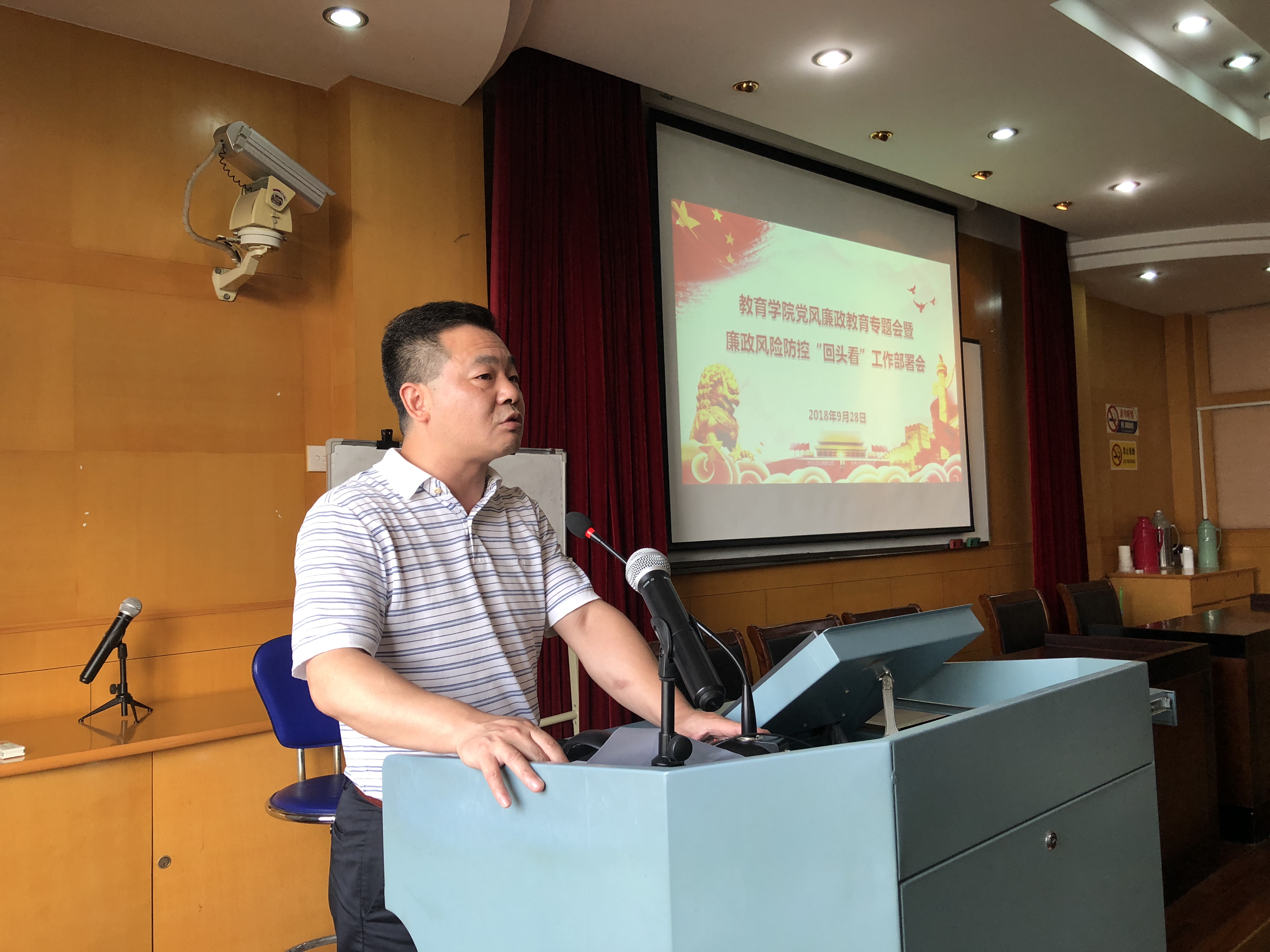 为进一步学习贯彻落实中央有关制度和会议精神,增强院系班子“两个责任”和“一岗双责”意识,推进学院党风廉政建设工作,学院纪委于9月28日下午召开党风廉政教育暨廉政风险防控“回头看”工作部署会。学院党政班子成员、纪委委员,系所党政班子成员,各研究机构负责人,学科负责人,学院机关全体人员及系所办公室人员参会。会议由学院党委书记吴巨慧主持。