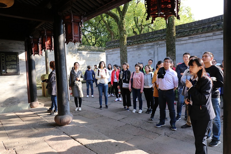 教职工们游览了浙江省境内第一大淡水湖,被郭沫若先生誉为“西子风韵、太湖气魄”的东钱湖。大家在湖心堤上漫步,感受湖面烟波浩淼、如烟似雾;在小普陀游览,体会“水天佛国”和“补陀洞天”的孝子情怀和巧匠工艺。秋风飒爽,风景如画,大家纷纷为东钱湖优美的风光和深厚的人文底蕴所陶醉。