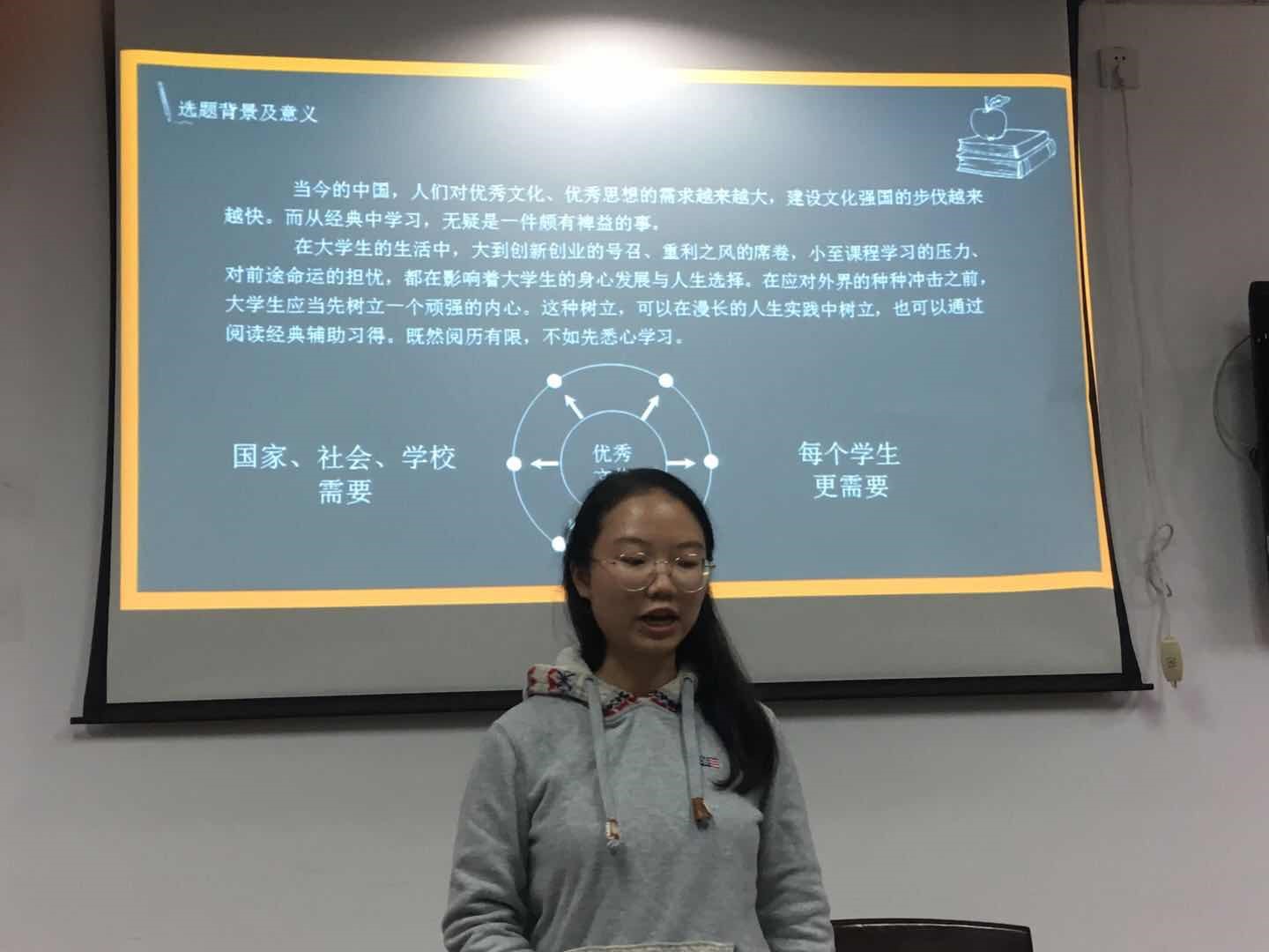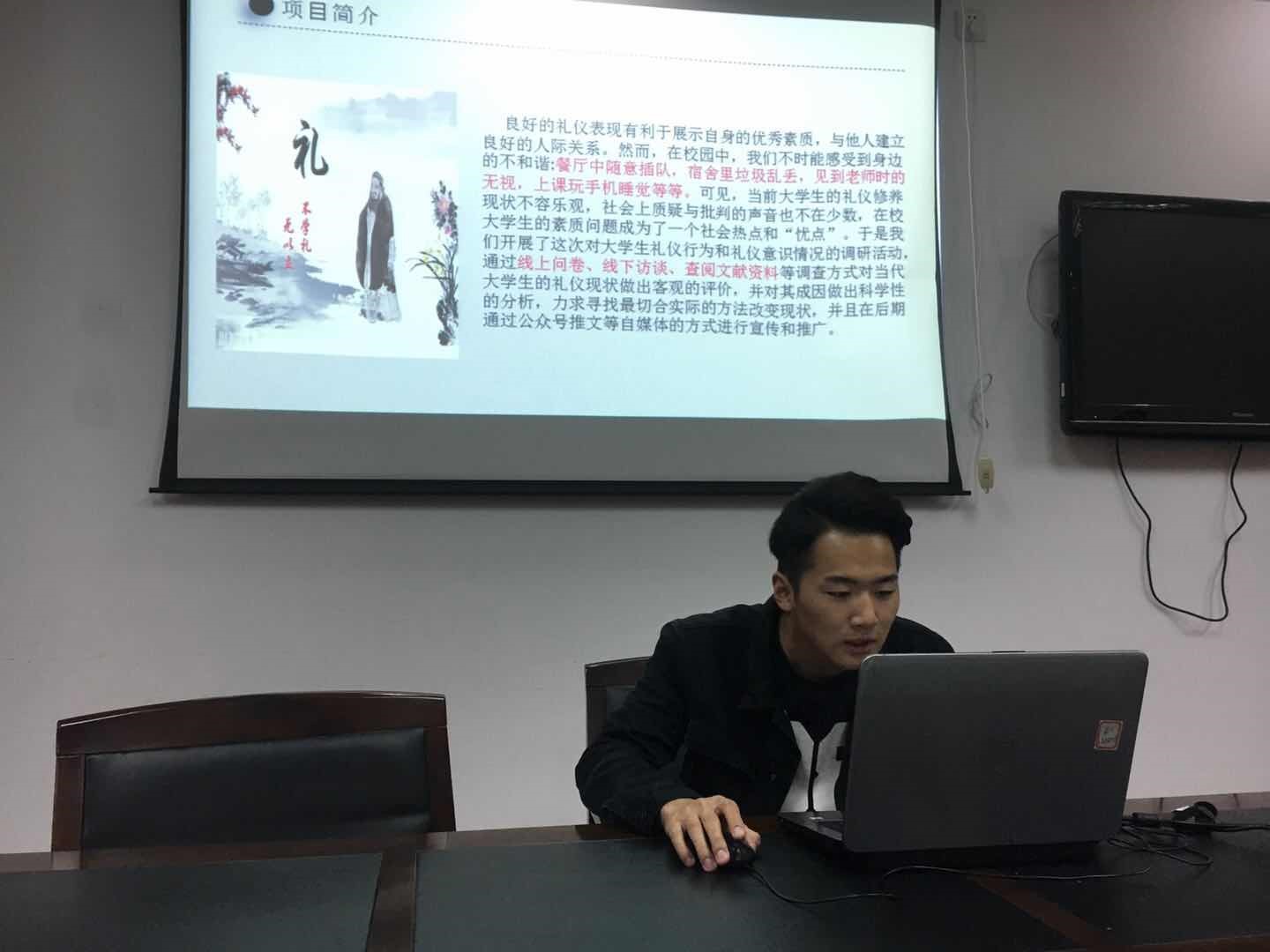 教育学院团委副书记贾旭婷老师,教育学院挂职团委副书记尹铮铮同学,教育学院学生会副主席高涵同学及教育学院青马学院一期学员马紫晨同学担任本次答辩会的评委。评委们从项目目的、针对的目标群体、活动开展的频率、组织形式、项目的可行性等各方面给同学们提出了宝贵意见。同学们针对老师们提出的问题进行了补充和修正,以期能够在项目的实施过程中,更好的利用项目服务同学、提升素质。