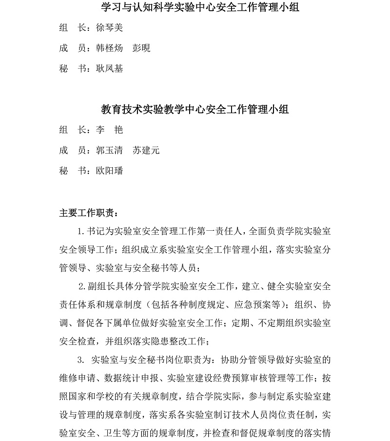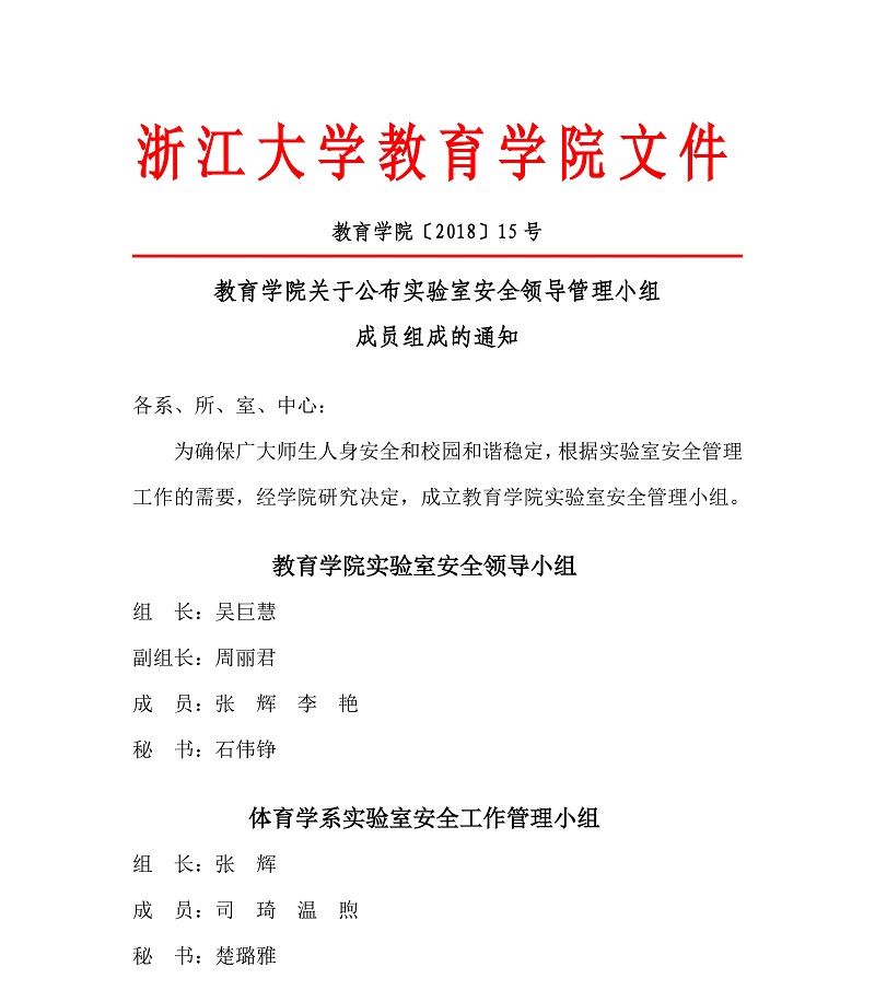 教育学院〔2018〕15号:教育学院关于公布实验室安全领导管理小组成员组成的通知