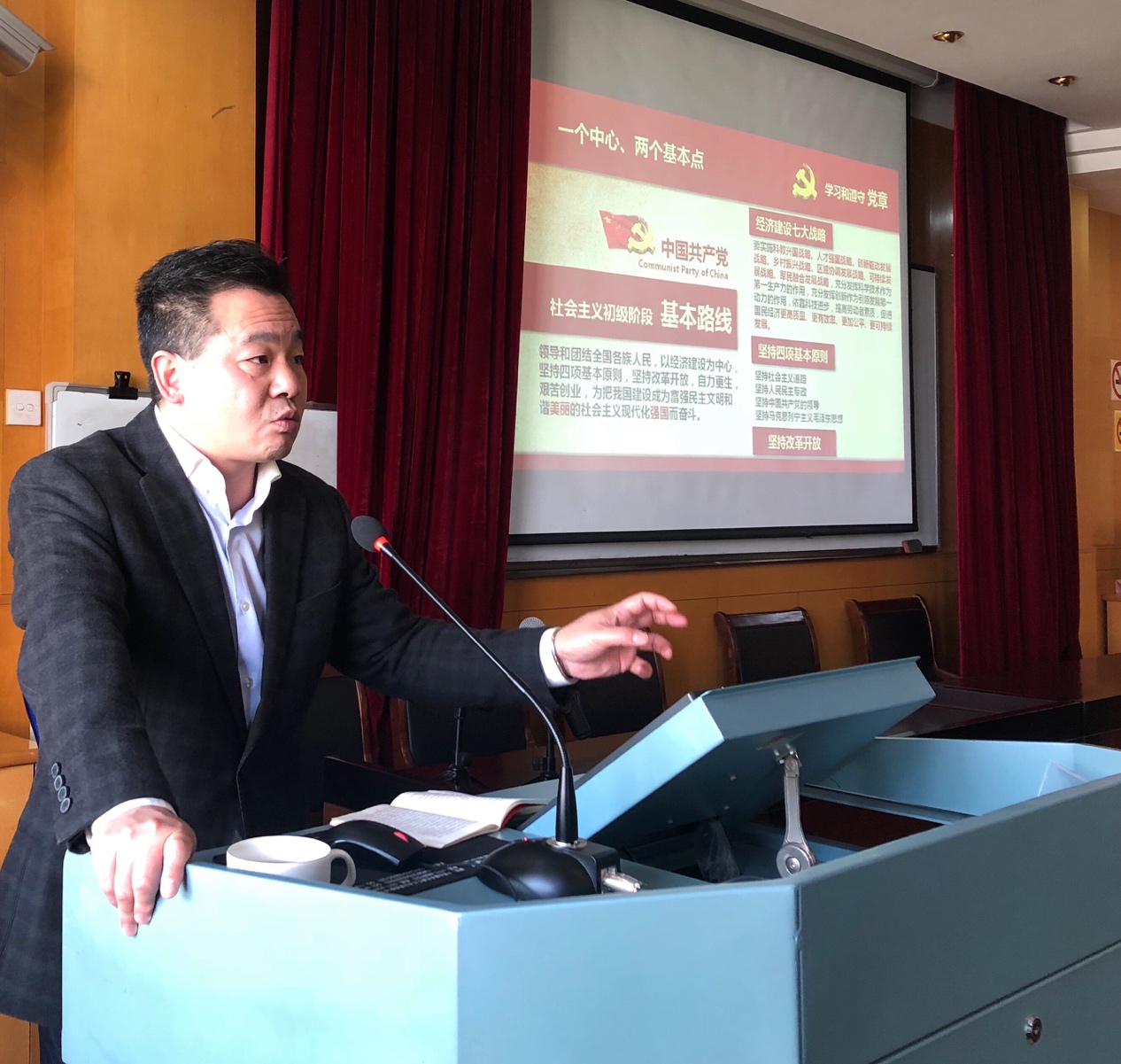 讲座伊始,吴书记就开宗明义地指出,党章是中国共产党为实现党的纲领、开展正规活动、规定党内事务所规定的根本法规,是党赖以建立和活动的法规体系的基础,是党的各级组织和全体党员必须遵守的基本准则和规定,具有最高党法、根本大法的效力。本次党课上,吴书记围绕党章的概述、党章的总纲、党章的条文、学习和遵守党章四个部分对新党章进行深入的学习和解读。