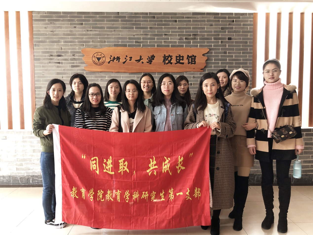 11月24日,教育学院教育学科研究生第一支部党员十余人前往浙江大学紫金港校区举行“同进取,共成长”党日活动,参观了浙江大学校史馆和“求是大讲堂”文化建筑群。