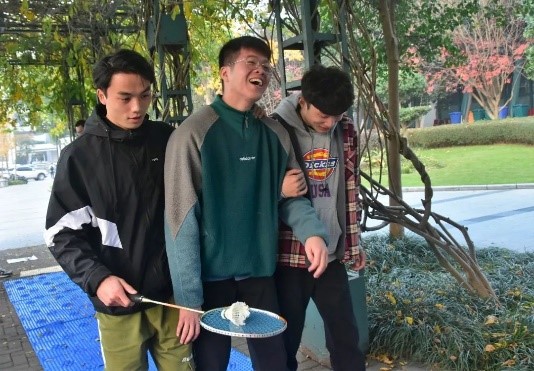 下午三点,内建活动开始。成员们以小组为单位开展游戏,在校史馆根据提示找出信息,在指压板上完成特定动作的接力赛……面对千奇百怪的游戏任务,成员们相互配合,齐心协力解决难题。在短短两小时的内建活动中,成员们积极参与,在团队协作中增进培养了感情,形成了特有的默契。