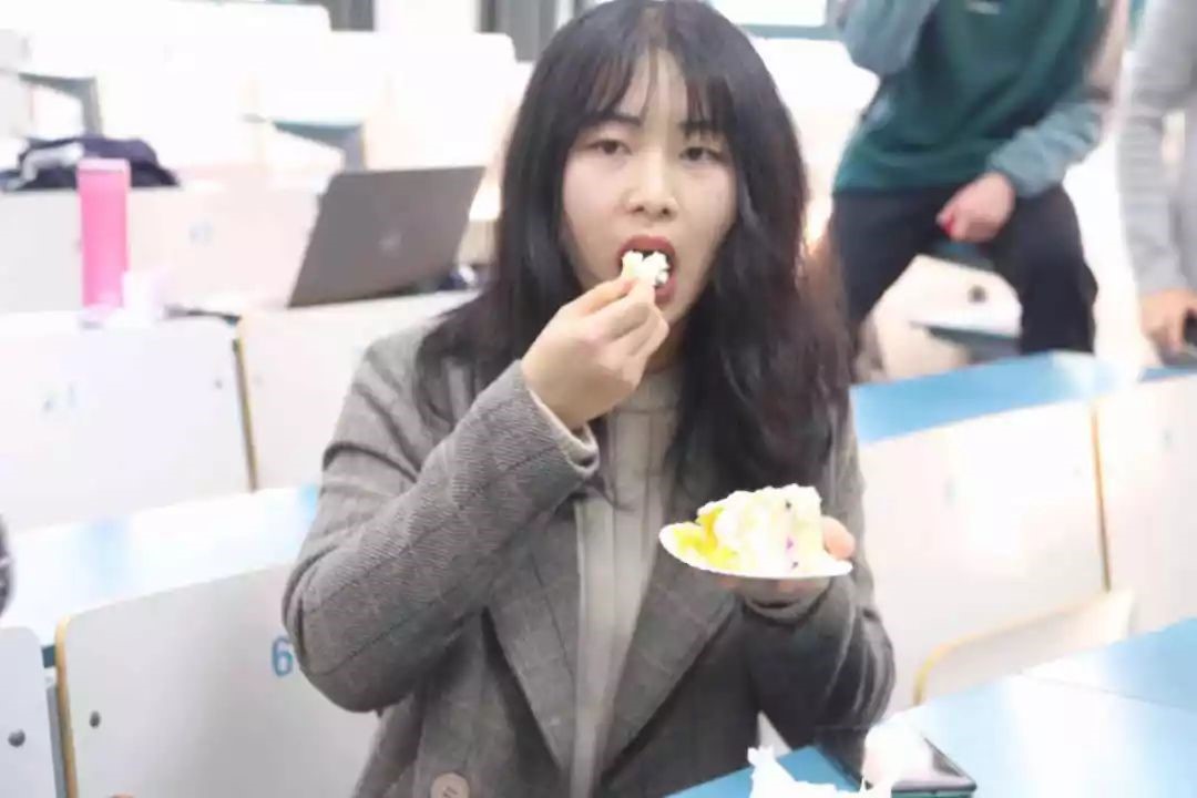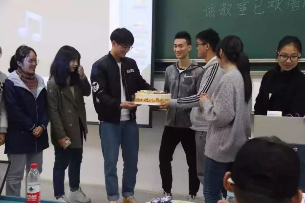 内训环节结束后,我们为11月、12月过生日的学生会成员过了一次集体生日,过生日的成员们集体上台合照,分切蛋糕,气氛温馨。
