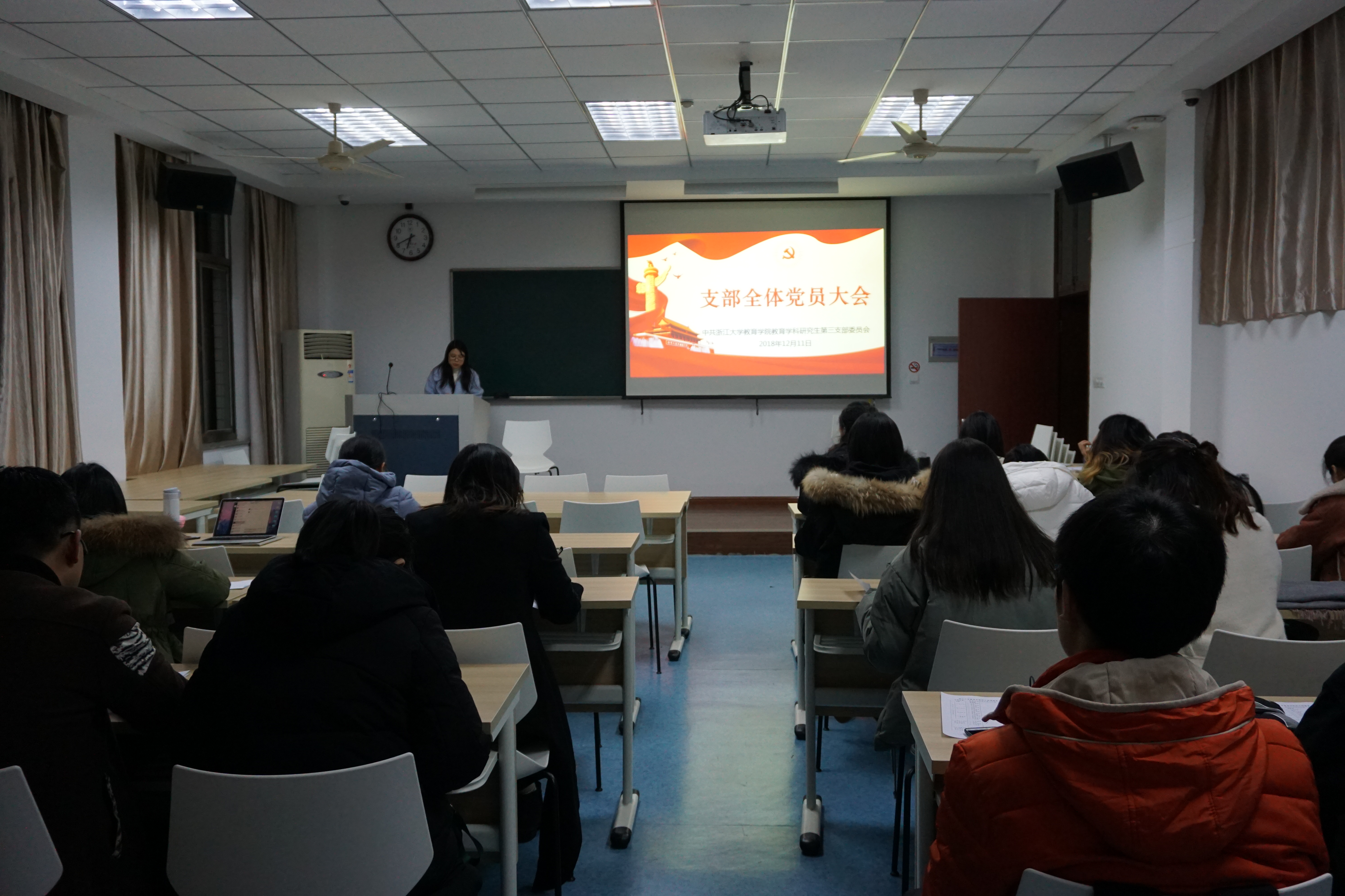 2018年12月11日晚,教育学院教育学科研究生第三支部全体党员大会在西溪校区田家炳书院504教室顺利召开,开展纪念“一二•九”运动主题学习活动。会议由支部书记叶晨晨主持,参加本次活动的除了教研三支部的党员,还有来自教硕1701、教硕1801的团员。