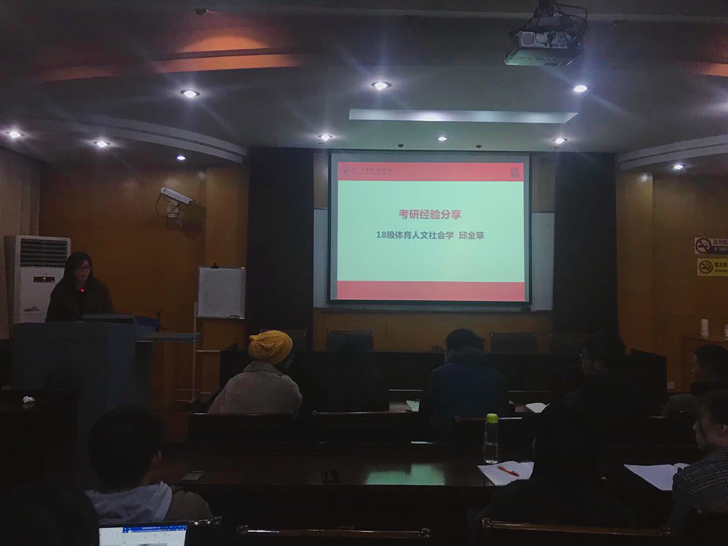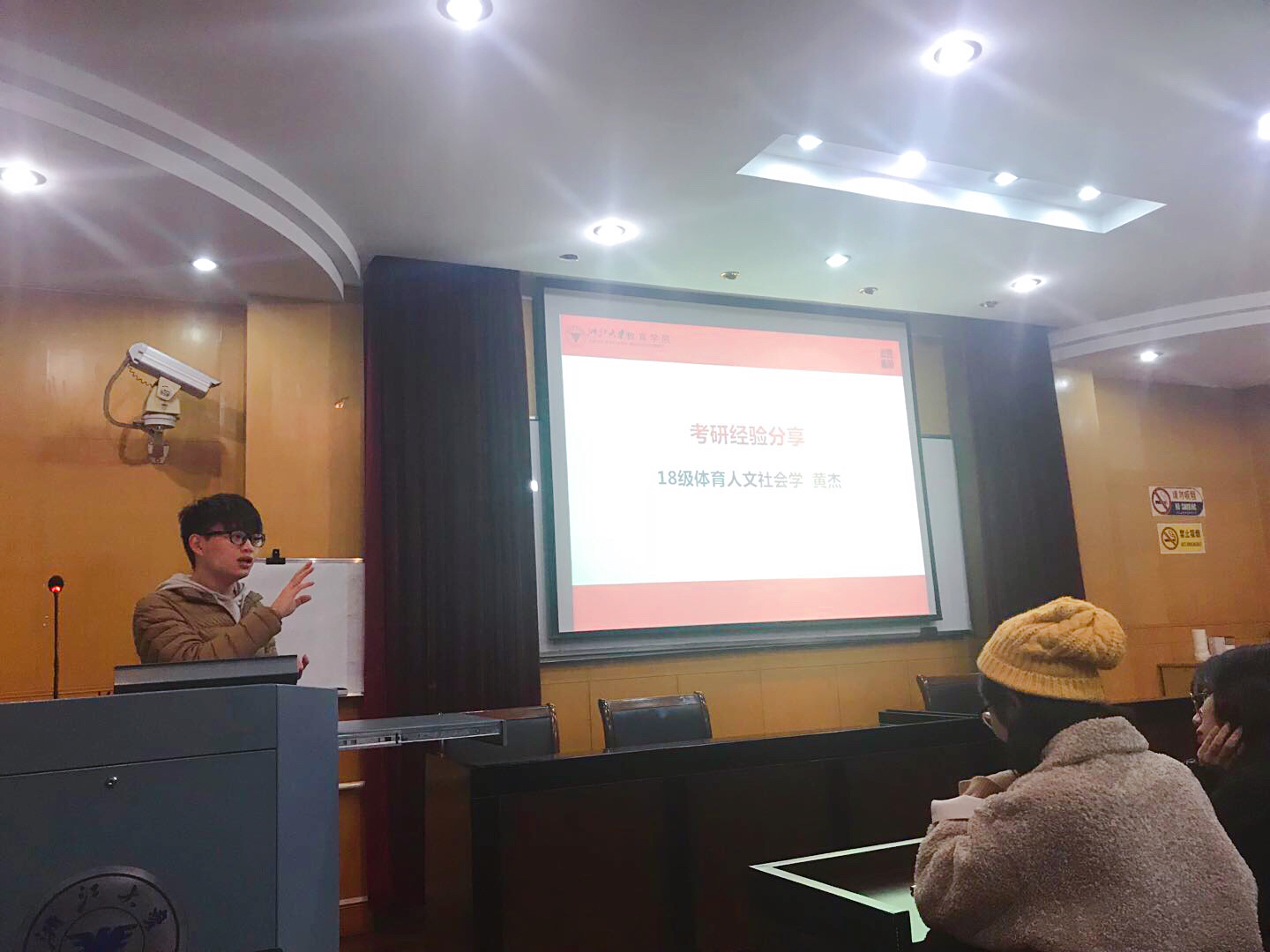 首先,18级课程与教学论吕梦圆学姐、18级课程与教学论章褚昀学姐、18级体育人文社会学邱金草学姐及18级体育人文社会学黄杰学长为我院即将参加考研的同学们分享交流了考研过程中的经验方法和心得体会。分享会上,学长学姐首先分享了备考复习的经验和考研的应试技巧,分题型、分科目介绍了答题的技巧;其次,学长学姐们回忆了自己在考研过程中经历的问题与困惑,并提醒同学们从细处着手,熟悉考场;最后学长学姐们还鼓励同学们在考研路上勇往直前,放松心态。在分享后的交流提问环节中,同学们针对考研的流程、考试过程中的注意事项、如何处理考试时间等方面提出了问题,学长学姐们也热心地为同学们进行了解答。