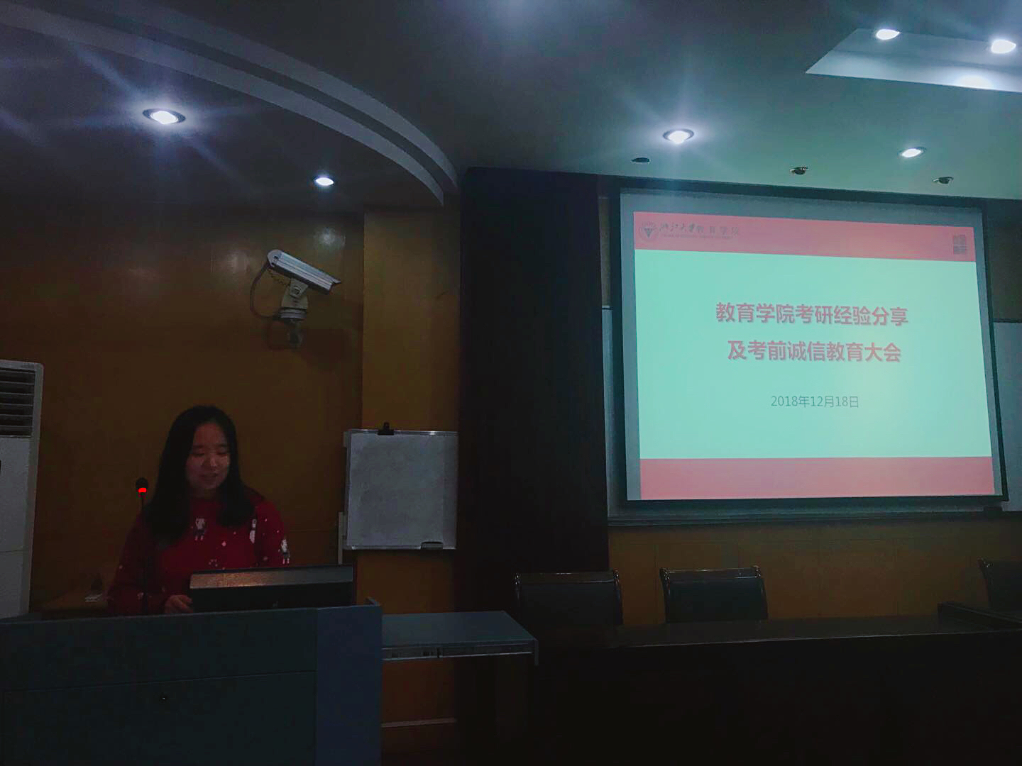 2018年12月18日晚18:30,教育学院考研经验分享及考前诚信教育大会在田家炳书院520会议室顺利召开。