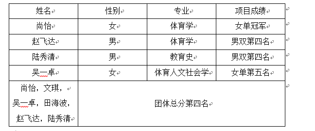 2018年浙江大学“三好杯”网球赛(研究生组)于12月1-2日,8-9日,15-16日在紫金港气膜及灯光球场举办。教育学系与体育学系共6名研究生代表教育学院参加了本次比赛,尚怡勇夺女单冠军。教育学院还最终荣获团体总分第四的优异成绩。这是近5年以来教育学院在浙大网球赛场上取得的最好成绩。