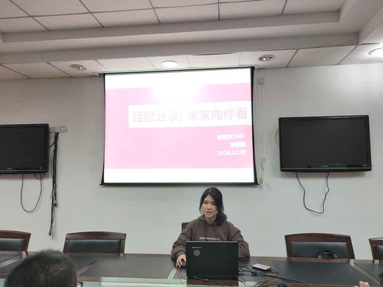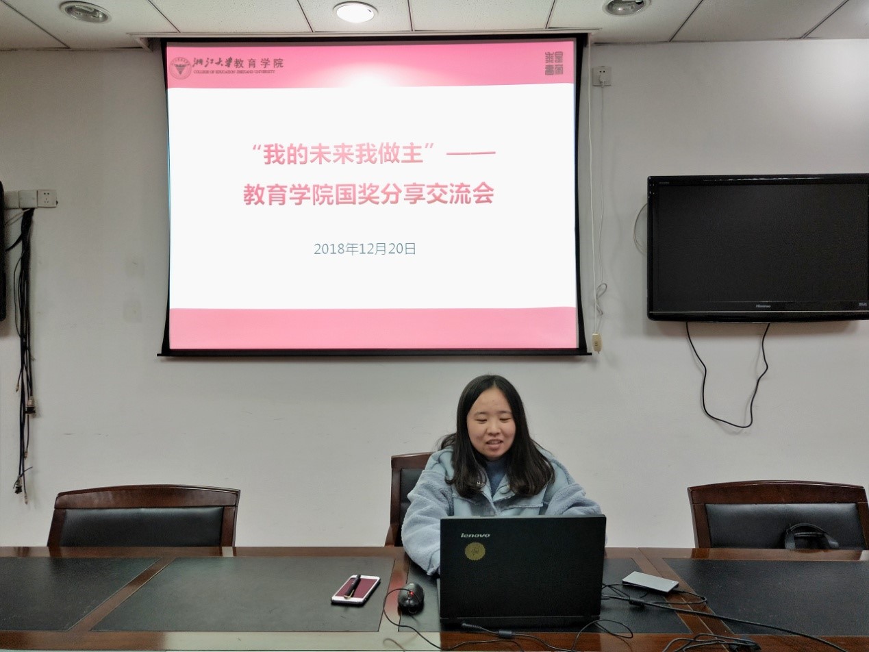 2018年12月20日晚18:30,三位获得2017-2018年度国家奖学金的教育学院学子在田家炳书院228会议室做了精彩分享。他们分别是来自教育学1501的张银露同学、教育学1601的提咏荷同学和公共事业管理1601的周钊颖同学。本次分享会由教育学院团委副书记贾旭婷老师主持。