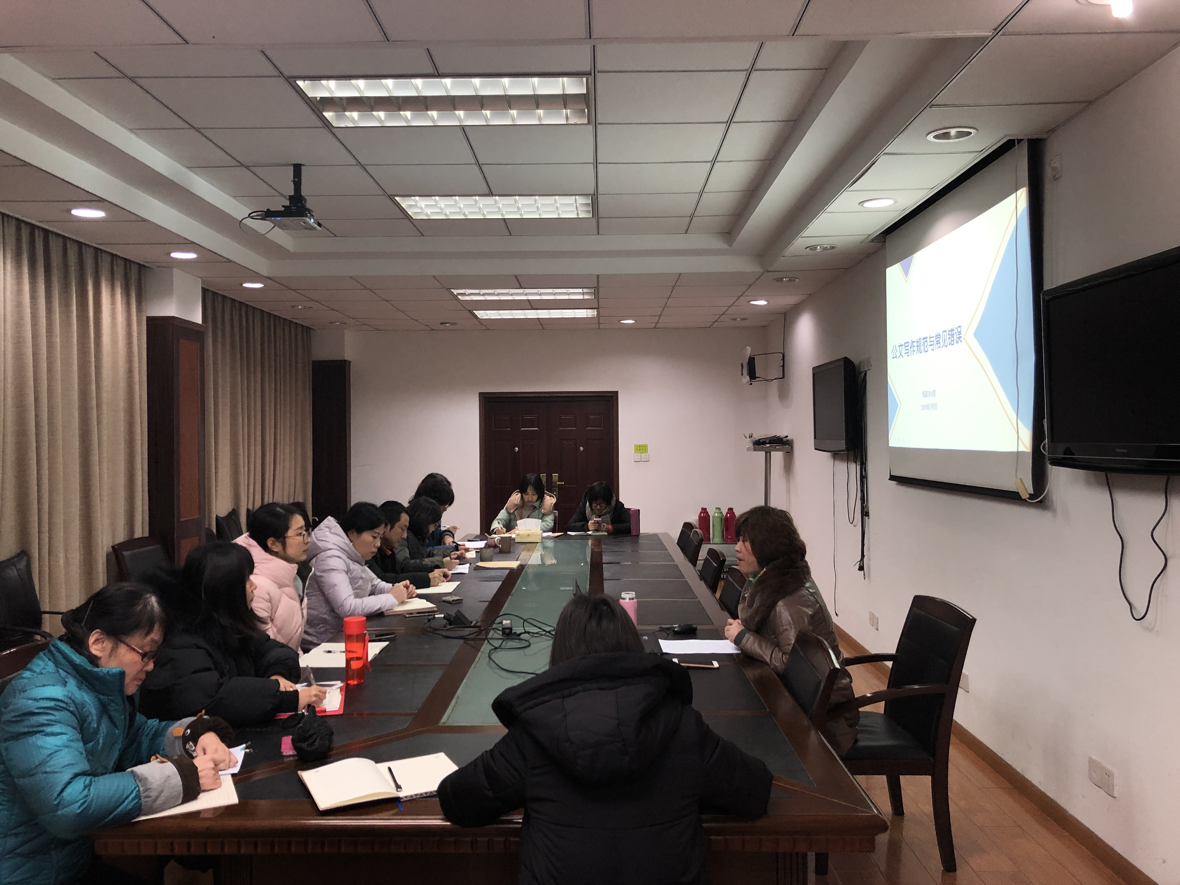 为使广大机关行政人员练好公文写作的“看家本领”,进一步提升机关的公文办理水平和质量,1月3日中午,院部机关直属支部举办公文写作规范专题培训会,院部机关直属支部党员、机关行政人员参加培训。培训由机关支部书记、党政办主任陈红玉主讲。