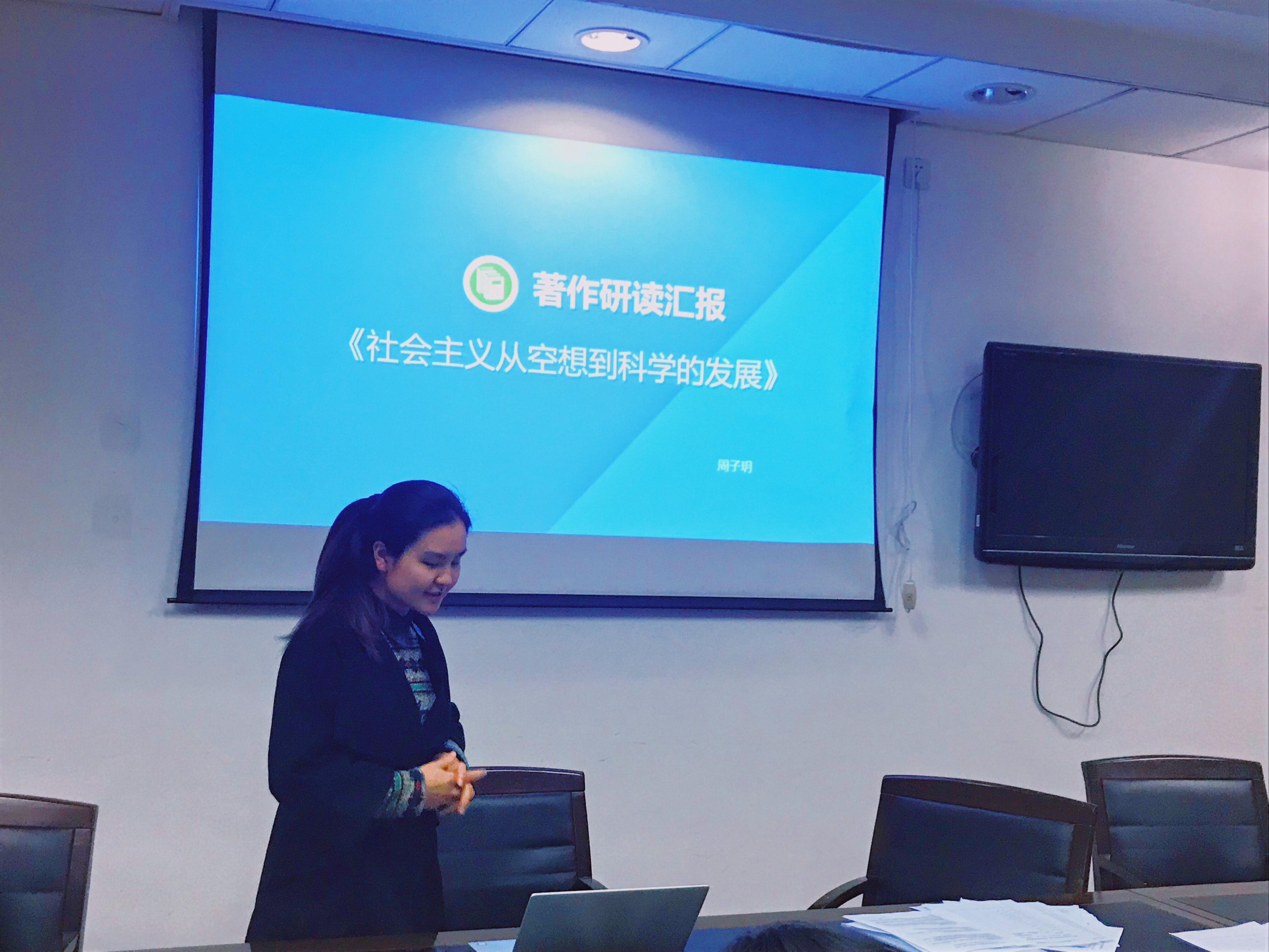 会议后半程,与会全体成员在叶晨晨的带领下,集体深入学习了习近平总书记在庆祝改革开放40周年大会上的重要讲话,深刻领会改革开放40周年以来的宝贵成果与经验。支部副书记周子玥就恩格斯所撰写的《社会主义从空想到科学的发展》一书,与支部成员进行了一次读书报告与分享。