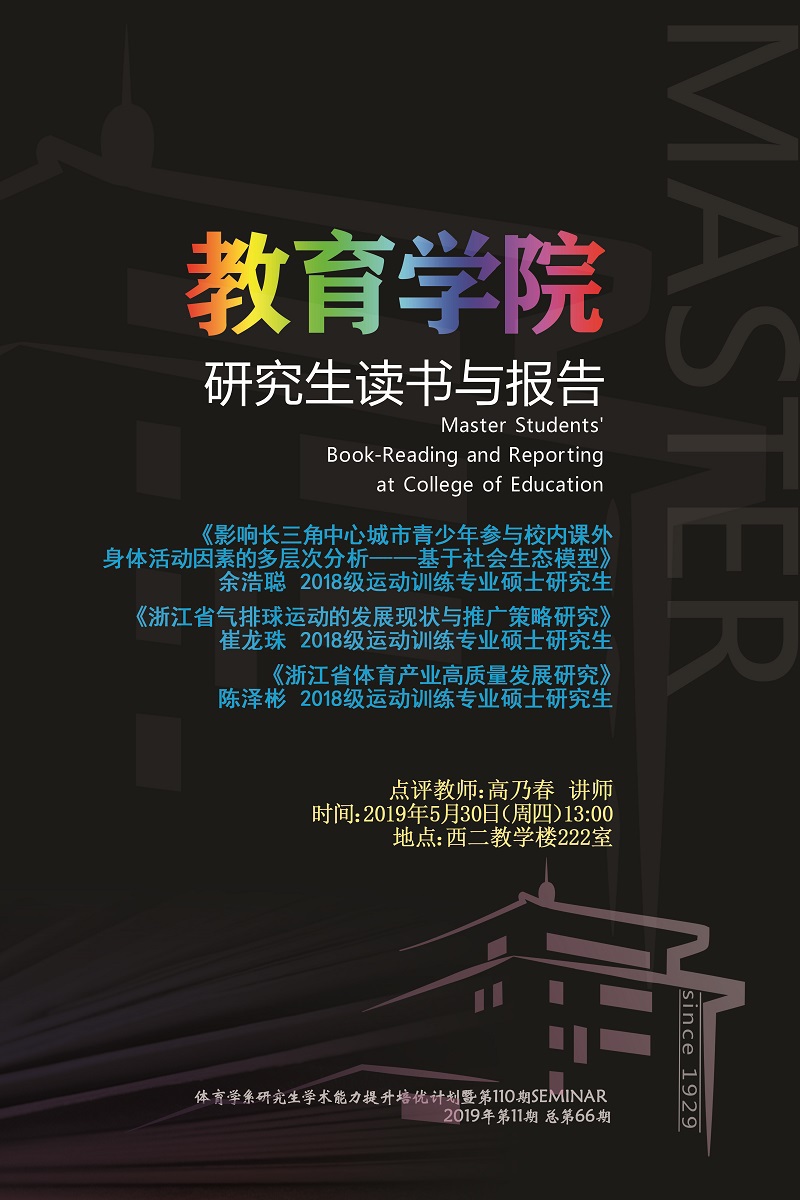【研究生读书与报告】2019年第11期(体育学系研究生学术能力提升培优计划暨第110期SEMINAR)