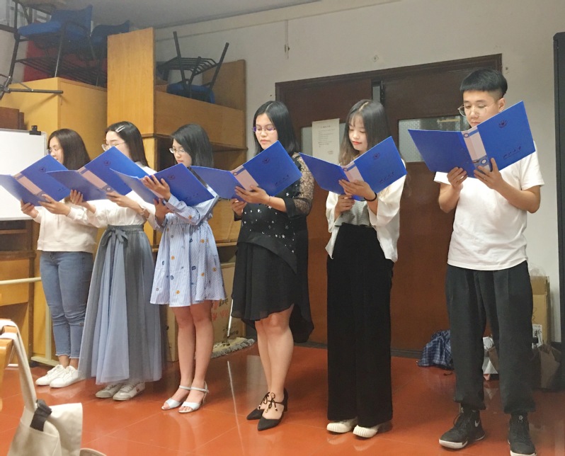 本次会议主要分为三个环节,一是“爱国、奋进、青春”主题诗歌朗诵,二是“奋进之路”的经验分享及毕业寄语,三是毕业纪念品赠送及毕业感言发表。
