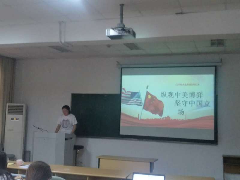 预备党员沈凯凤同志为大家带来了题为《纵观中美博弈,坚守中国立场》微党课,她首先为我们简单介绍了中美贸易战这一事件,其次从中美贸易战的背景、主要领域、前景展望和坚守中国的立场四个方面,牢牢结合当下的社会现状,分享了自己的所思所想。支部组织委员何子薇也表示支部同志在微党课方面不但牢牢把握了时代脉搏,而且深刻结合了自身经历,鼓励大家积极参与今后的微党课。