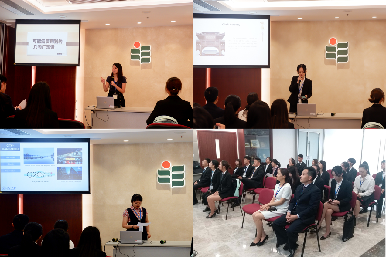 随后,交流营师生进行了风采展示。来自16级公共事业管理的王菲繁同学从历史文化、风物特色等角度详细介绍了杭州,来自17级教育学的石心玥和王璐同学则介绍了浙江大学及教育学院的历史沿革、校训宗旨、基本概况及办学成果等。