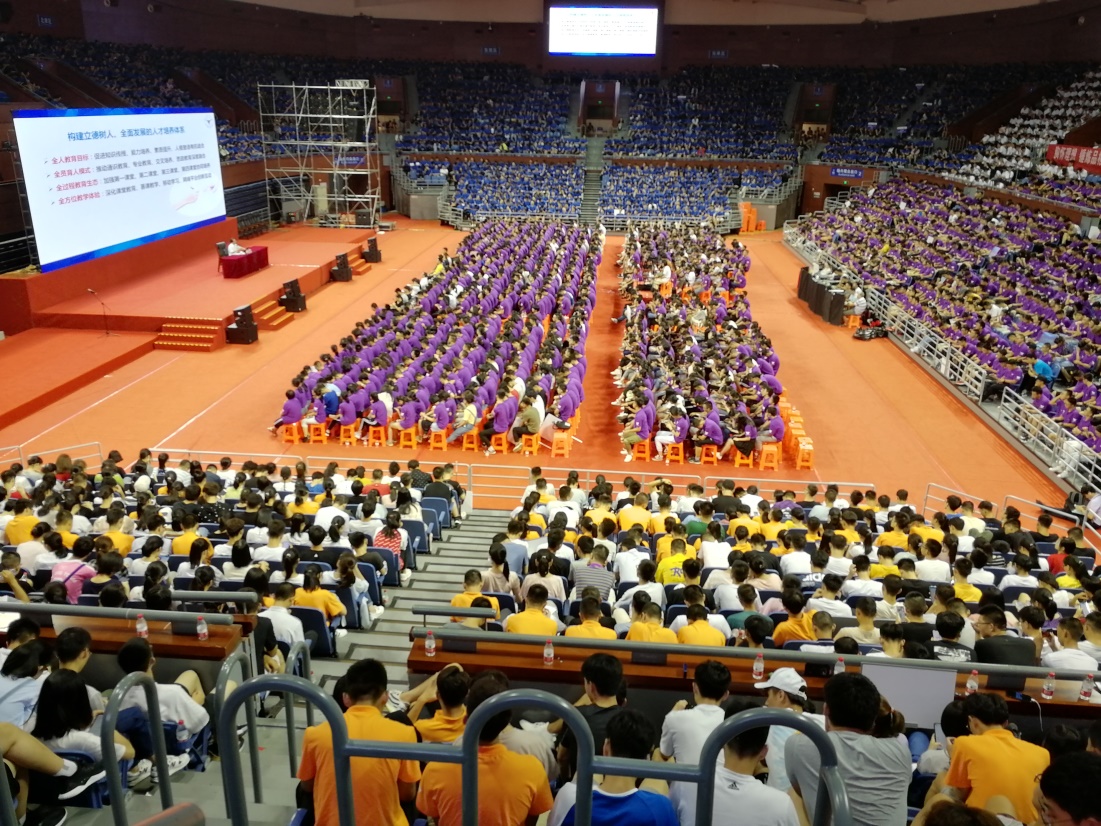 8月18日晚,浙江大学2019级本科新生开学典礼在紫金港校区体育馆举行。典礼现场气势恢宏,吴朝辉校长、教师代表、家长代表、优秀学长代表向新生表达了期望和祝福。新生们将带着蓬勃向上的朝气,弘扬求是精神,谱写求是新篇。