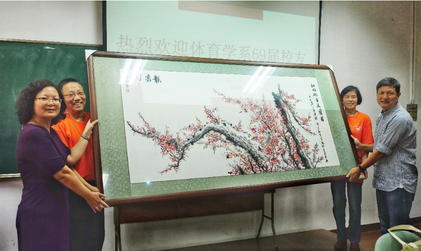 10月6日-8日,体育学系1969届毕业50周年同学会在西溪校区举行。7日上午,40余位校友齐聚西二226会议室,与恩师、同窗再叙情谊。教育学院副院长周丽君教授、体育学系党总支书记沈国平老师分别代表院系对“回家”的校友们表示欢迎,为校友们颁发毕业纪念证书,并致以美好的祝福。校友代表袁裕帆老师向师生汇报了校友们毕业后的发展和现状,并表达了对母校的眷恋和对师生情谊的感怀。同学会上,大家再次聆听昔日老师的谆谆教诲,记忆仿佛回到50多年前的课堂。最后,1969届校友共同为体育学系赠送画作,并祝愿母校、母院欣欣向荣。