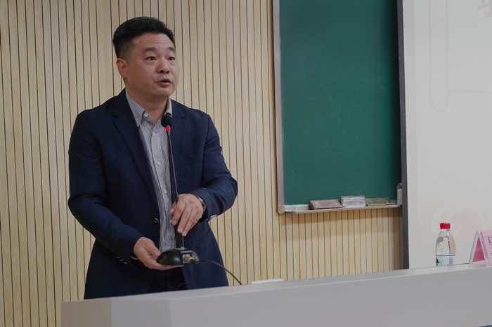在全体师生起立并奏唱国歌后,教育学院党委书记吴巨慧为大家带来以“习近平新时代中国特色社会主义思想概论”为主题的专题党课。
