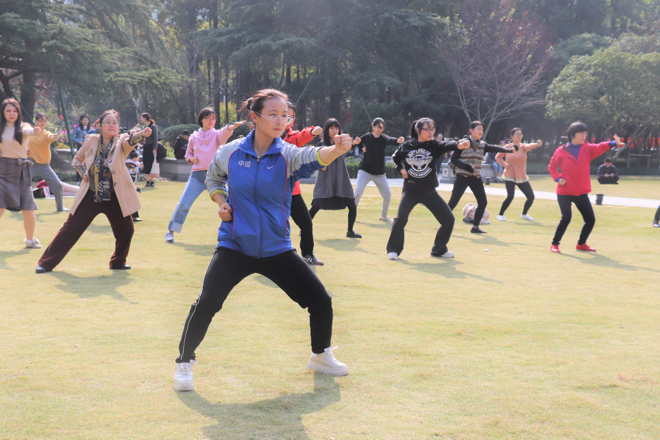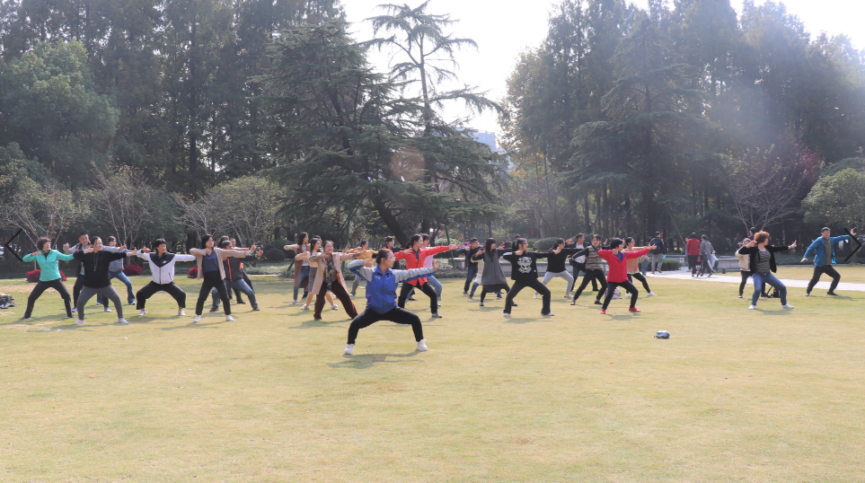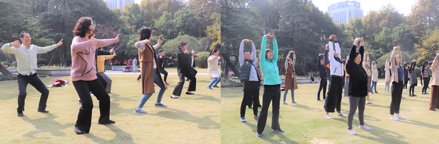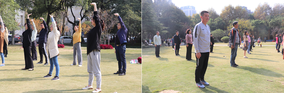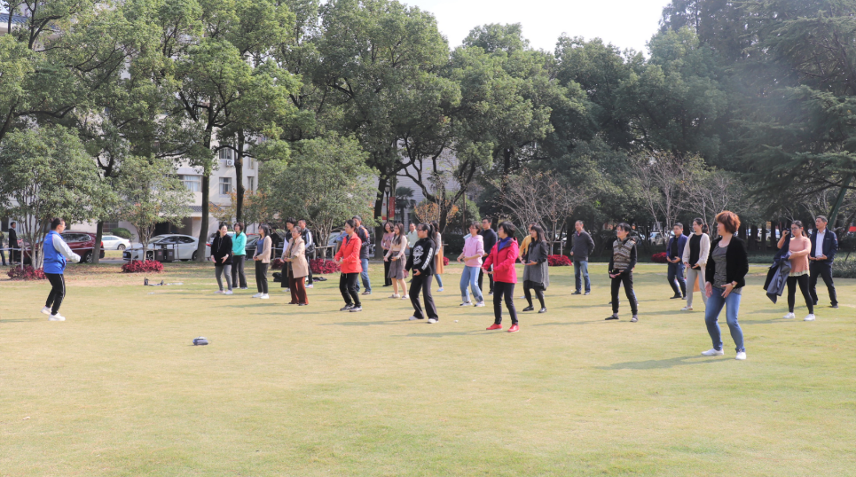 为了进一步弘扬国粹,继承和发扬武术文化,帮助教职工强健体魄、丰富业余体育文化生活,11月8日中午,学院教职工30余人齐聚西溪校区大草坪习练“八段锦”健身功法。