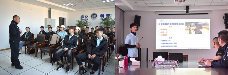 随后,支部博士生党员周正为特警大队队员带来了《军体融合下的体能训练》的专题讲座。周正从军事体育的相关概念、定义、要求、现状及挑战5个方面展开,并结合自身科研经历,提出了军警体能训练缺乏科研助力以及军体交叉人才培养需求等问题。特警大队林副大队长及队员们对周正的报告给予了高度好评,认为报告所提到的问题正是队员训练中面临的现实问题,并期待今后能与支部师生在警员科学化体能训练方面有更多的交流。支部同学们也认识到作为体育专业的学生,应该更加积极地运用所学的专业知识和技能去解决相关领域解的问题。