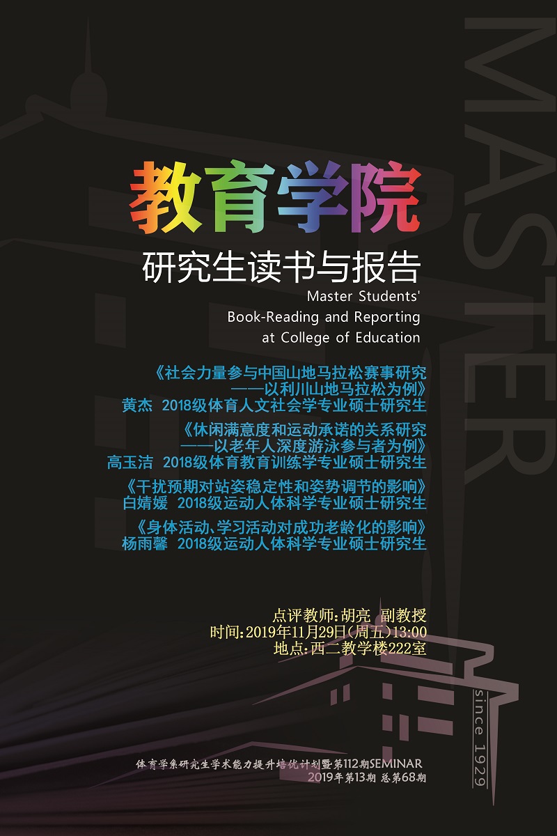 【研究生读书与报告】2019年第13期(体育学系研究生学术能力提升培优计划暨第112期SEMINAR)